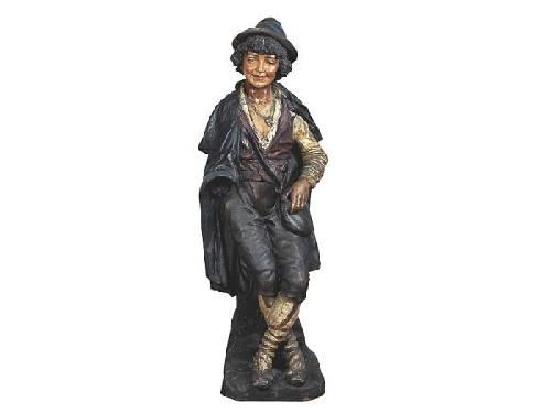 Terracotta, colour painting. Boy with a hat in Tyrolean clothes, with satchel bag on his side. The right hand is missing, minor chips and restoration. Signed on the plinth: J. Rondorf, VERVIELFELTIGUNG VORBEALTEN. Austrian, circa 1900 Size: 128 cm