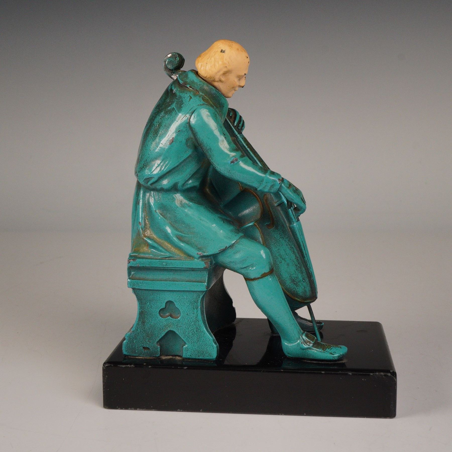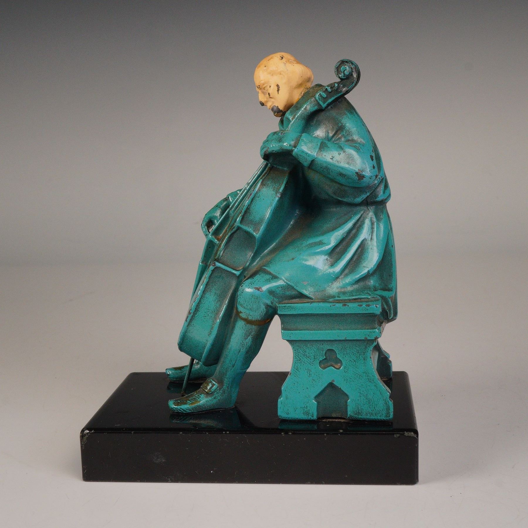 J. Ruhl 1932 Metal Cellist Bookend on Marble Base