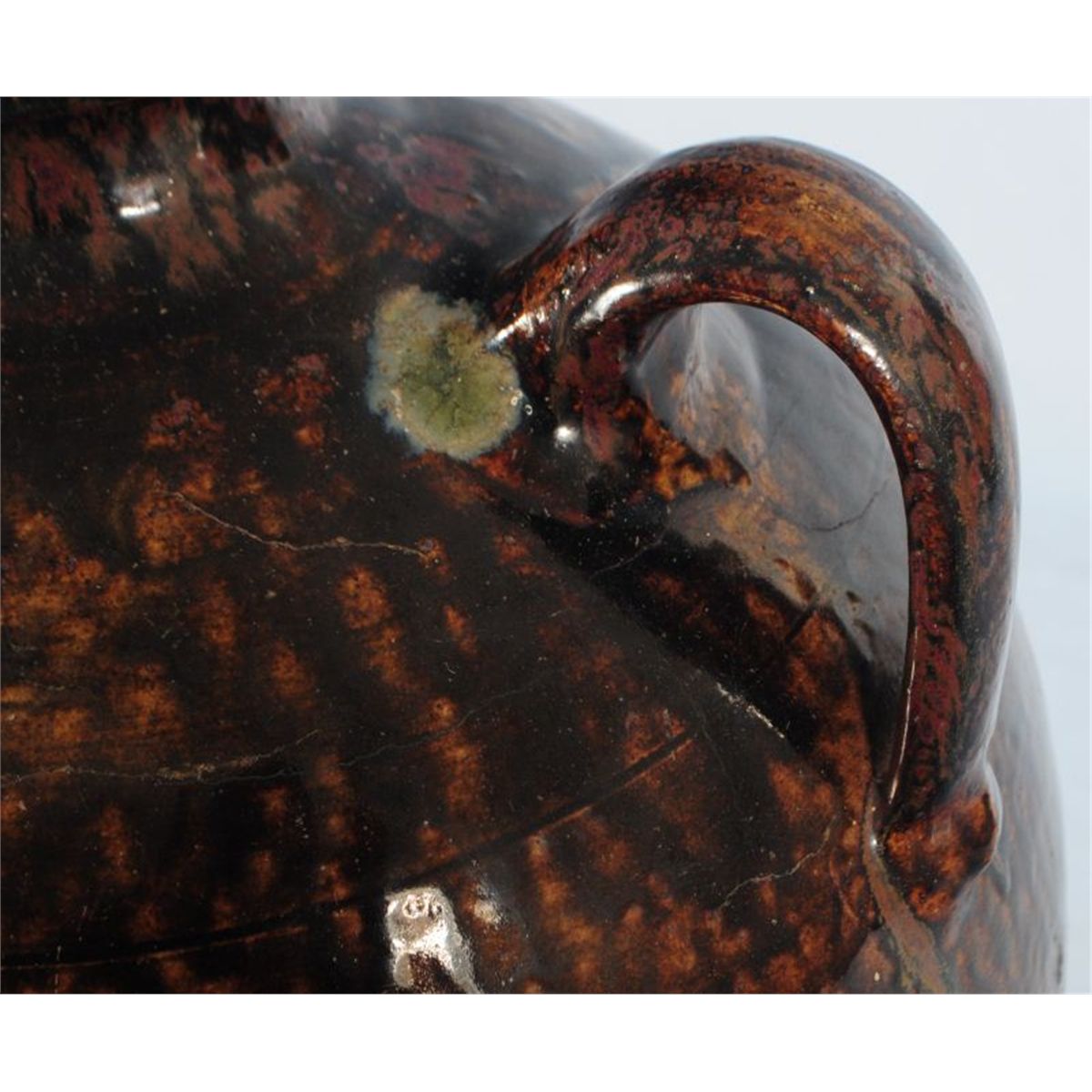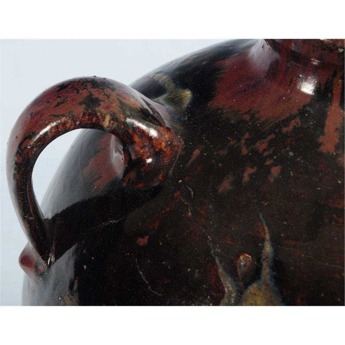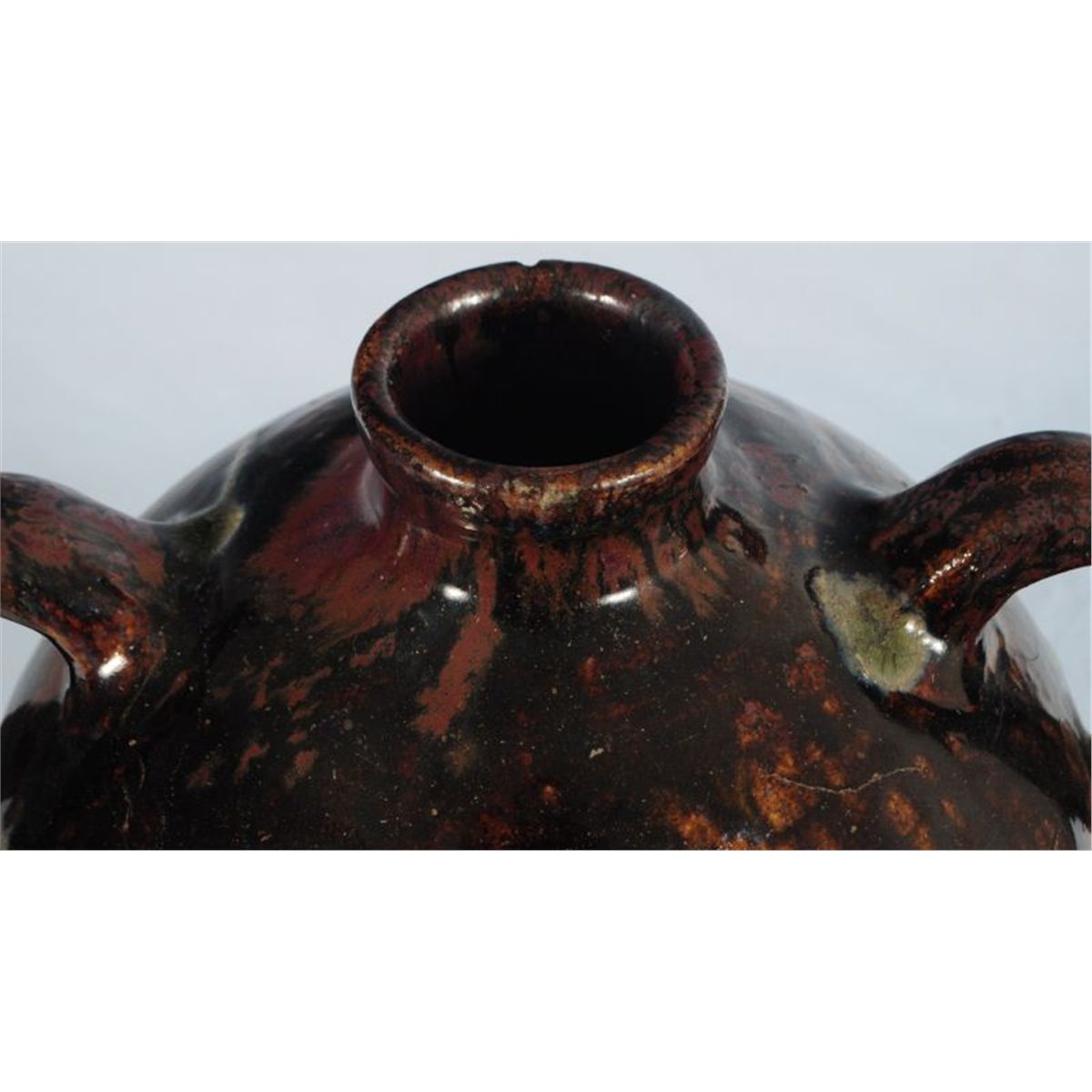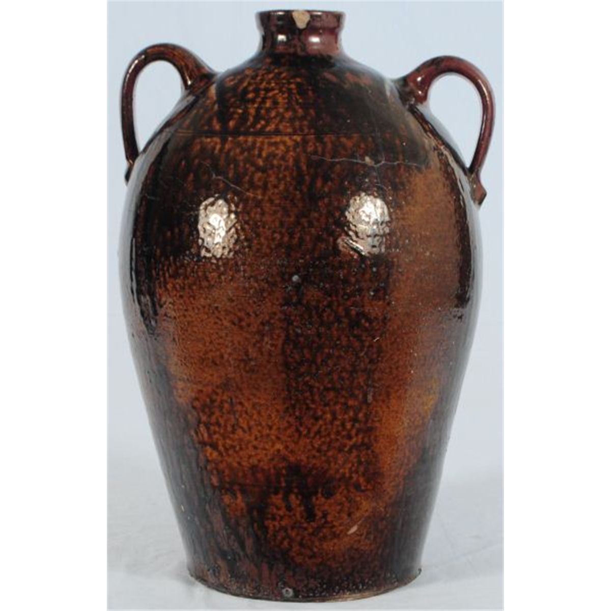 Ovoid Two handed Jar. Attributed to J.S. Nash/Milligan Frazier. Exceptional. Ash glaze. Found in Tyler, Smith County, Texas. 19". One small rim chip.