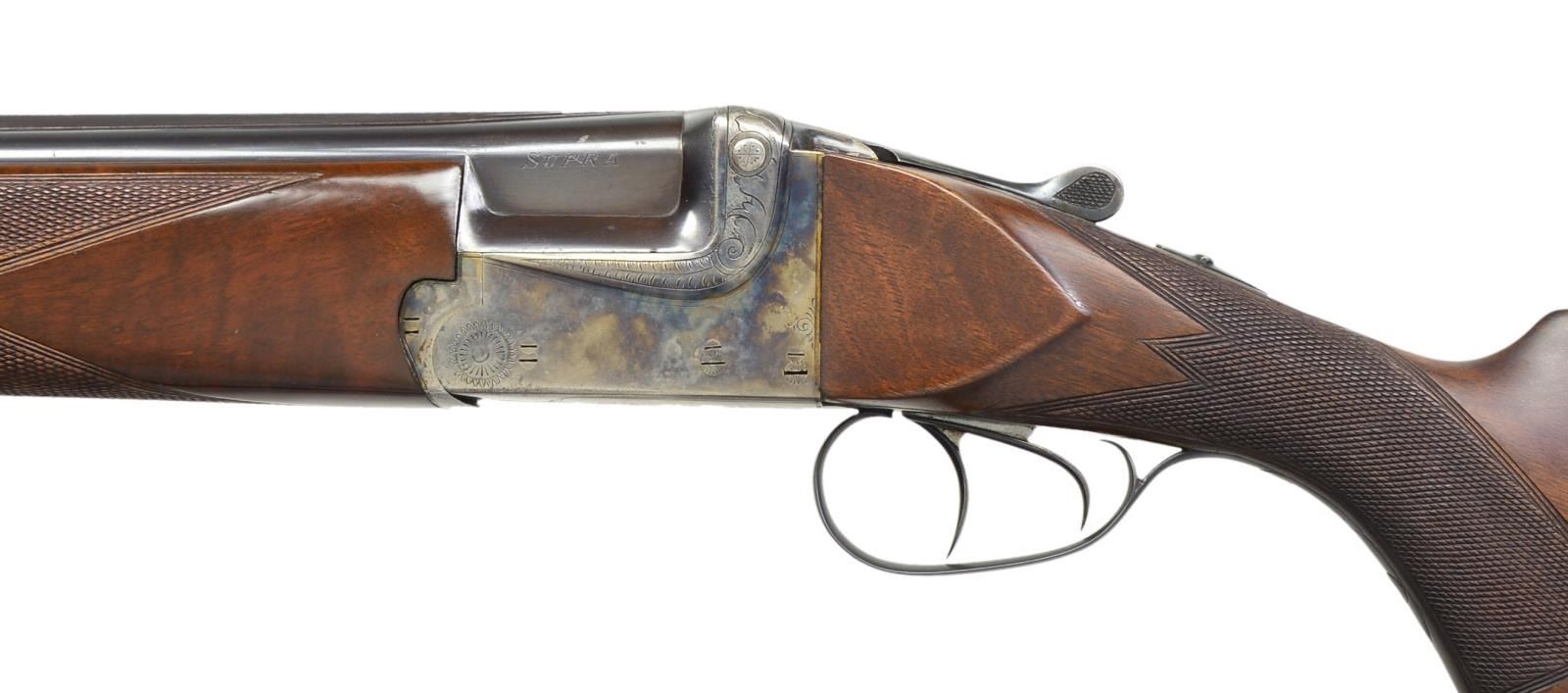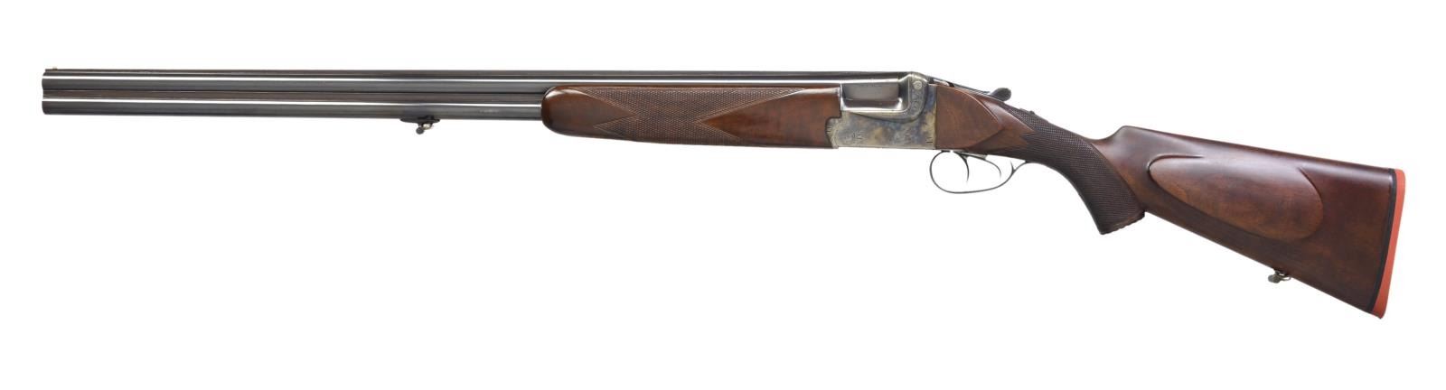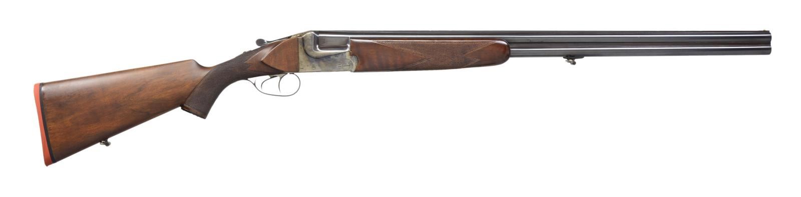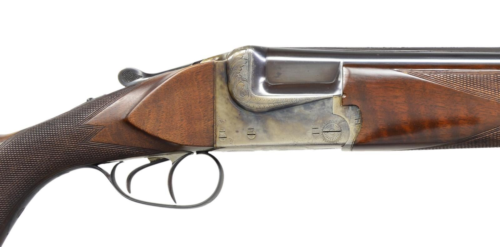 Cal. 16 Ga., 2 1/2". S# 31362. Bbls. 28 1/2" of "Canon Demi Bloc Best Fluid Steel". Ivory front bead. Rib is marked "J. SAIVE ARMES LIEGE". Choke constrictions: under - .018, over - .018. Case colored boxlock action w/ fancy borders & highlights of scroll engraving. Under lug & crossbolt locks. Dbl. triggers. Extractors. European walnut forearm & capped pistol grip stock w/ hand checkering & sling swivels, front swivel is bbl. mounted. LOP: 14 3/8" over Pachmayr Presentation rifle pad. DAC: 1 13/16". DAH: 3 1/4". Stock is cast off. WEIGHT: 6 lbs., 5.1 oz. CONDITION: bbls. retain over 95% original blue. Action has 60% lightly faded case colors. Stocks have good refinish. Good bright bores. (19-4744/DS). CURIO. $700-1,100.