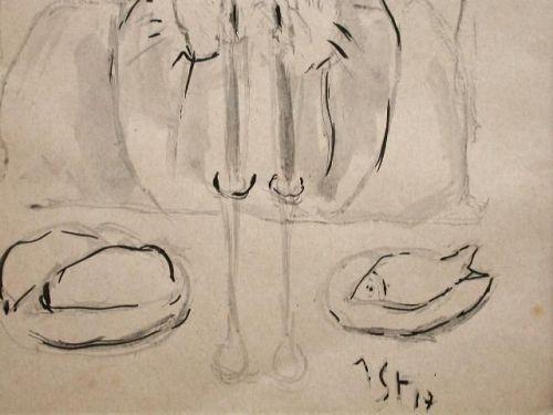 Additional Information : This is an Original ink and Ink wash drawing by Jacob Steinhardt from 1917.