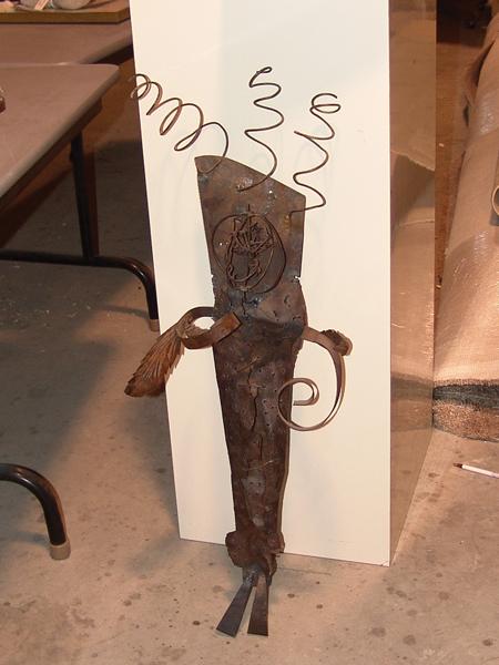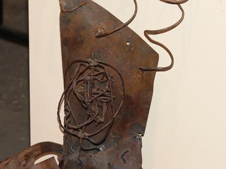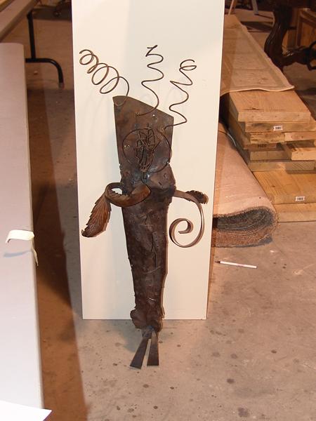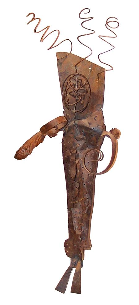 Circa Late 1900s, Signed original stylized metal sculpture depicting an Indian cradleboard. Very good condition. 15" x 19" x 12"
