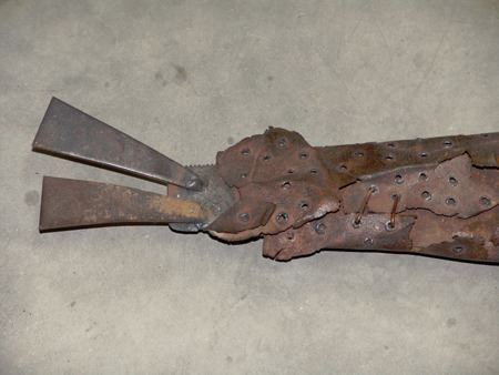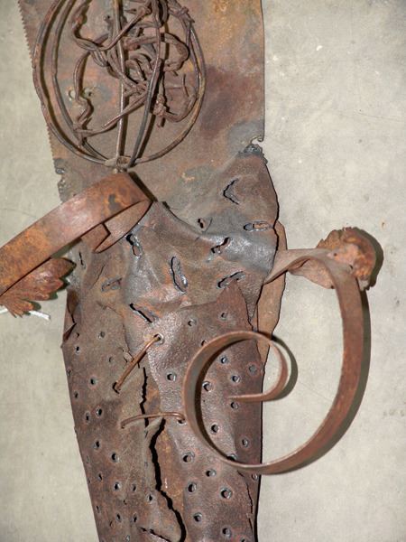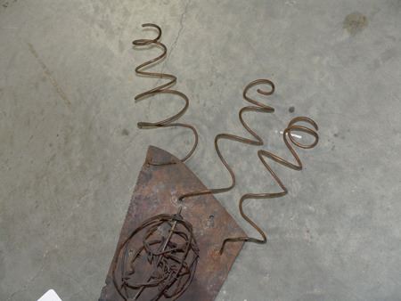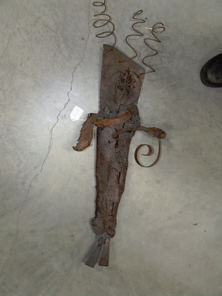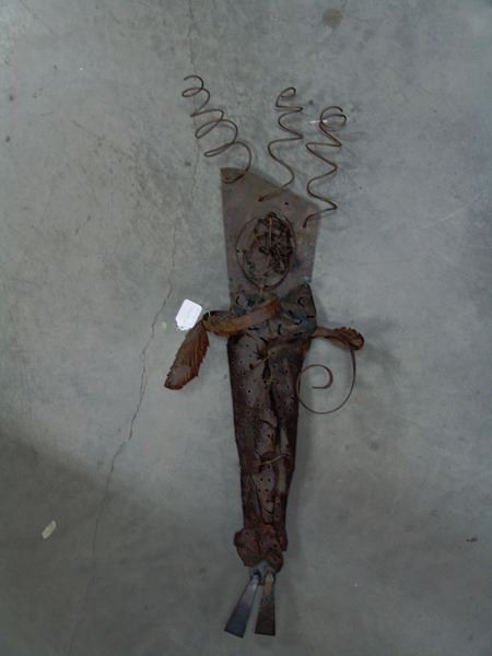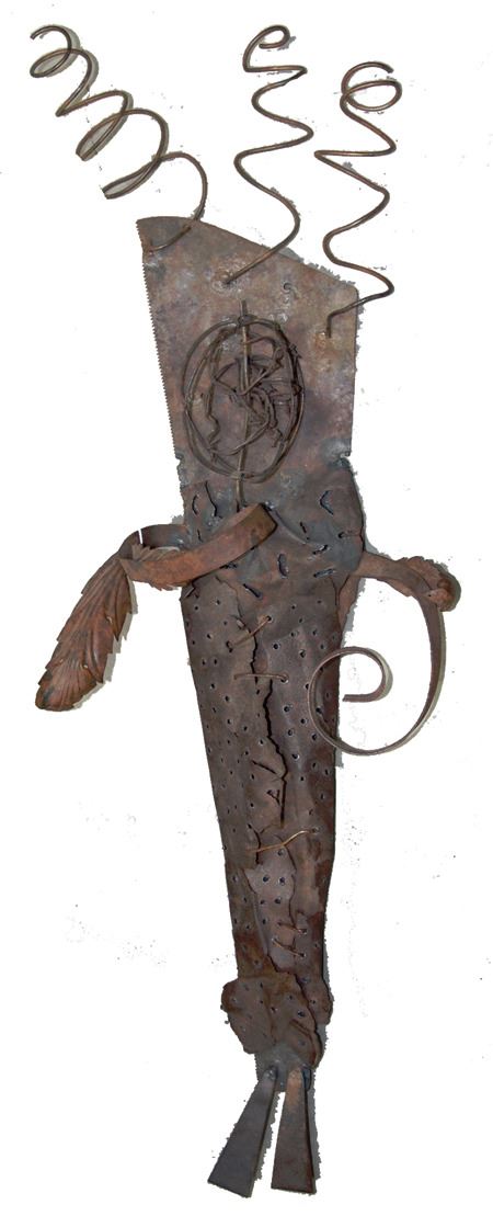 Late 1900s, Unique signed original metal and iron sculpture in human(?) form. Very good condition. 34" x 10" x 6"
