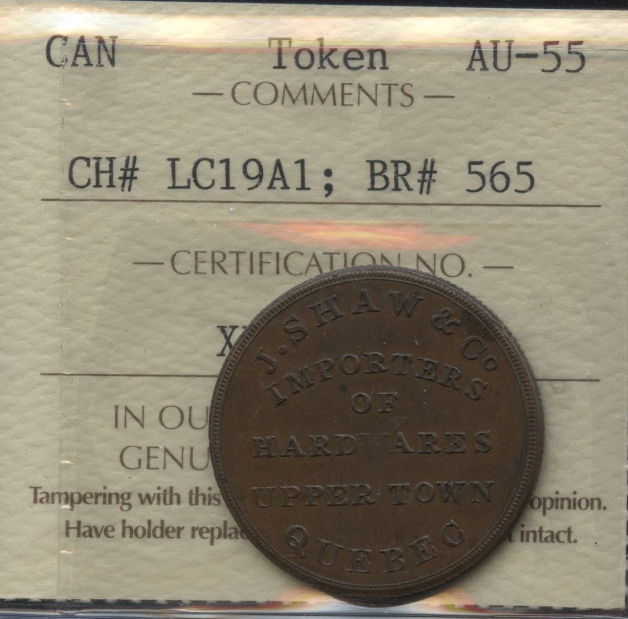 J. Shaw & Co. Importers of Hardwares, 1837 BR 565