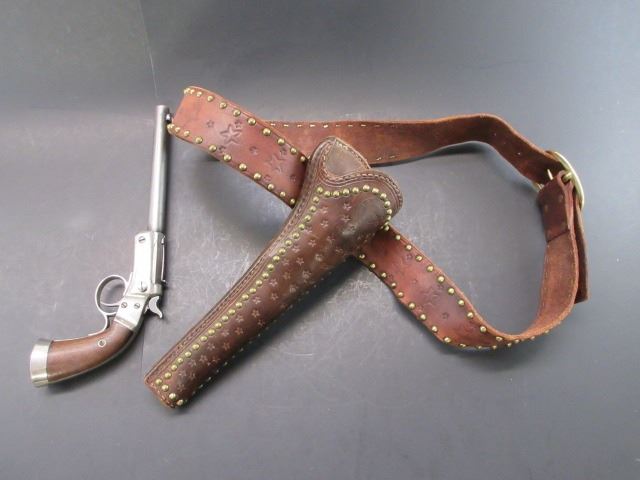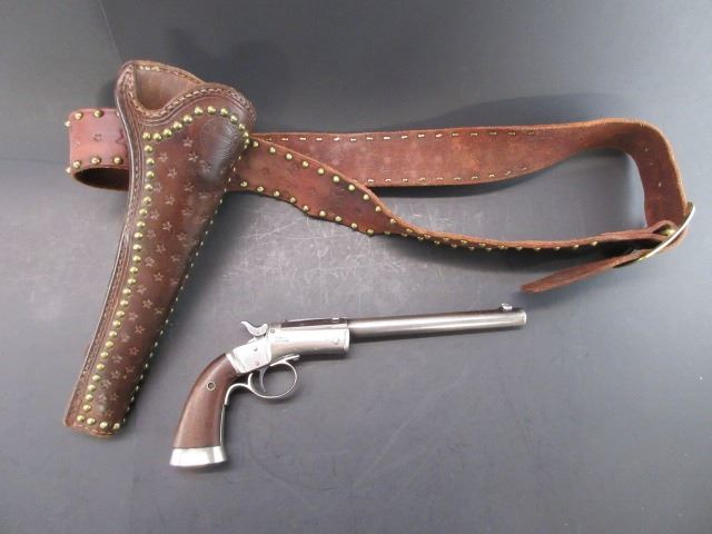 J Stevens Single Shot Pistol- .22- 8" Barrel- Studded Holster and Belt Marked F Costanza Stevensvill