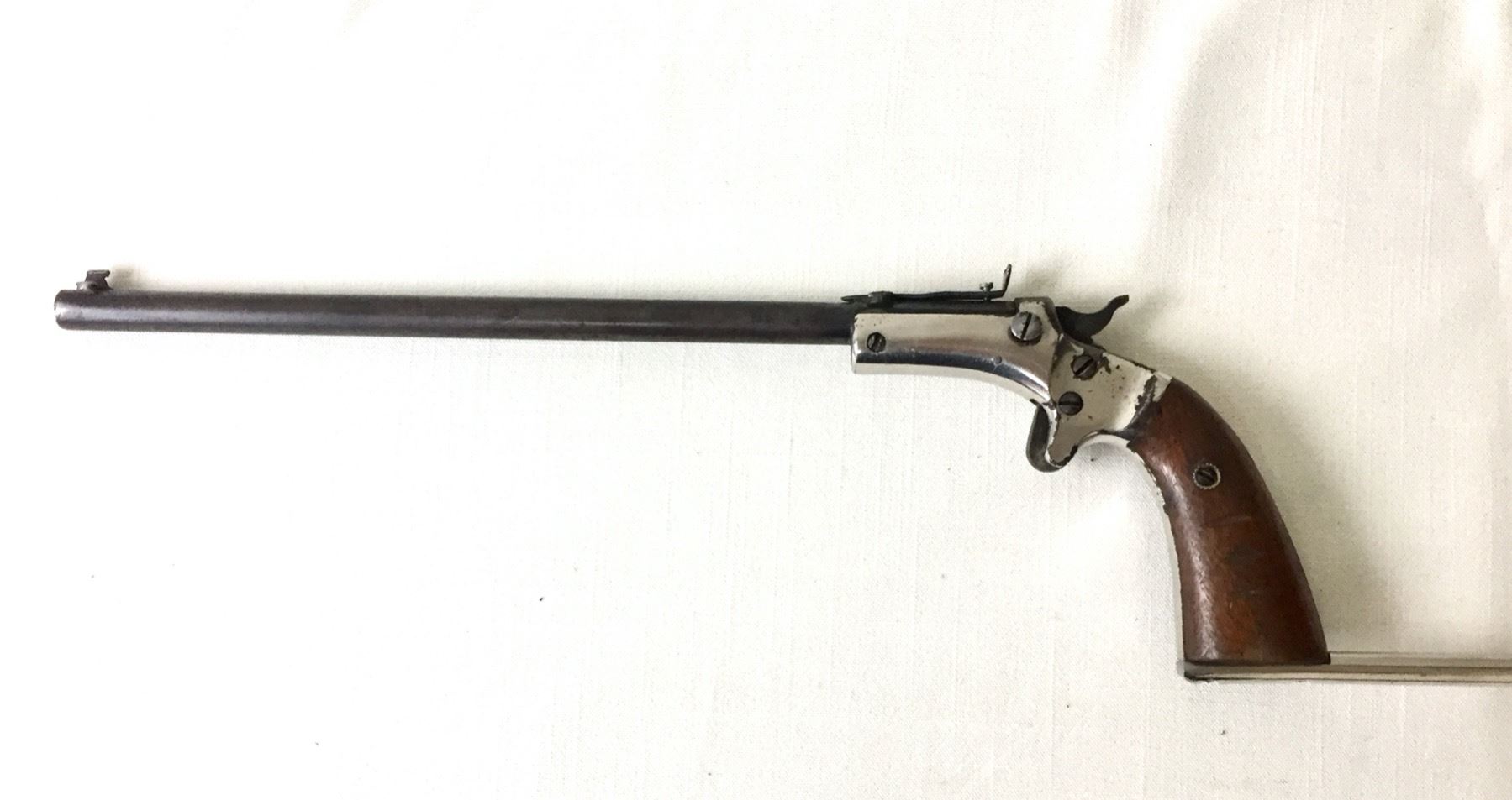Description: Presented for sale in this lot is a J. Stevens target .22 with a detachable shoulder stock. Maker: J. Stevens.