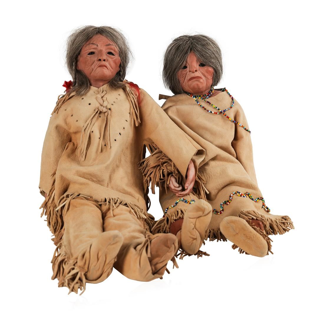 A beautiful set of two Native American dolls created by J. Turner, circa 1979. This is a very unique set as the couple is an elderly couple.