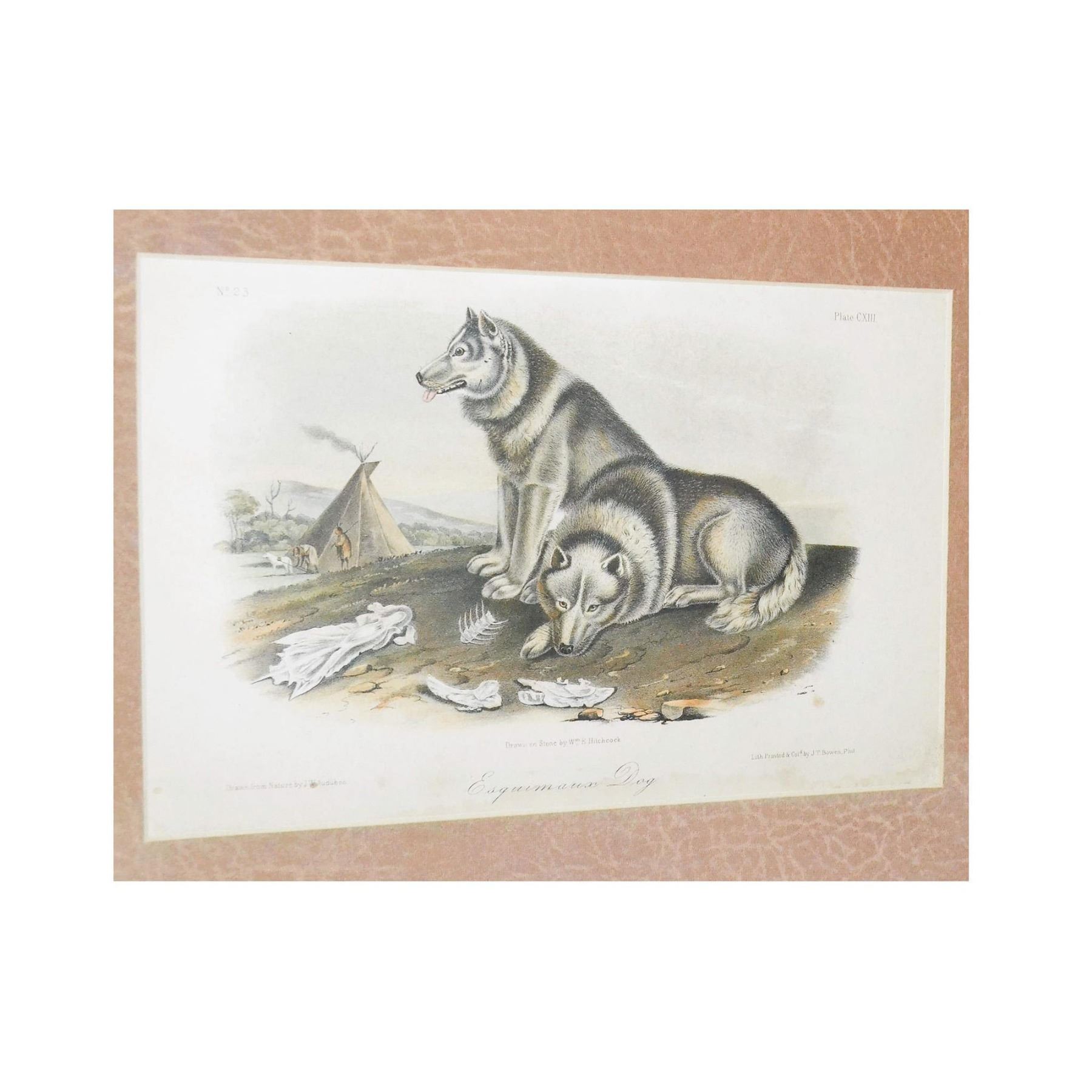 J.W. Audubon Original HC Engraving, Esquimaux Dogs, C. 1890, Custom Frame