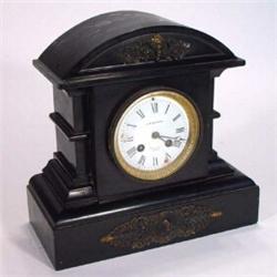 J W Benson black slate chiming mantel clock with enamel dial, 28cm high…