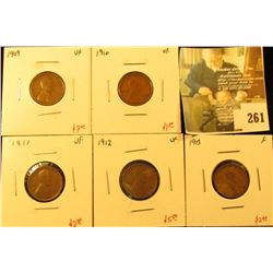 261 - Group of 5 Lincoln Cents, 1909 VF, 1910 VF, 1911 VF, 1912 VF & 1913 F, group value $18.50Mckee Coins Inc.