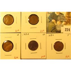 274 - Group of 5 Lincoln Cents, 1916 VF, 1916-S F, 1917 VF, 1917-D VF & 1917-S F, group value $13Mckee Coins Inc.