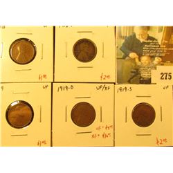 275 - Group of 5 Lincoln Cents, 1918 VF, 1918-S F, 1919, 1919-D VF/XF, 1919-S VF, group value $10+Mckee Coins Inc.