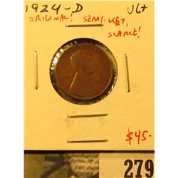 279 - 1924-D Lincoln Cent, VG, original chocolate brown, semi-key date, scarce, value $45Mckee Coins Inc.