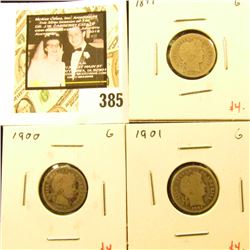 385 - Group of (3) Barber Dimes, 1899, 1900, 1901, all G, group value $12Mckee Coins Inc.