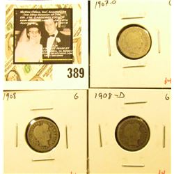 389 - Group of (3) Barber Dimes, 1907-O, 1908, 1908-D, all G, group value $12Mckee Coins Inc.
