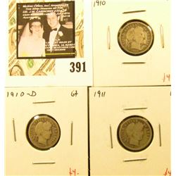 391 - Group of (3) Barber Dimes, 1910, 1910-D, 1911, all G, group value $12Mckee Coins Inc.
