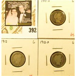 392 - Group of (3) Barber Dimes, 1911-S, 1912, 1912-D, all G, group value $12Mckee Coins Inc.