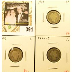 394 - Group of (3) Barber Dimes, 1915, 1916, 1916-S, all G, group value $12Mckee Coins Inc.