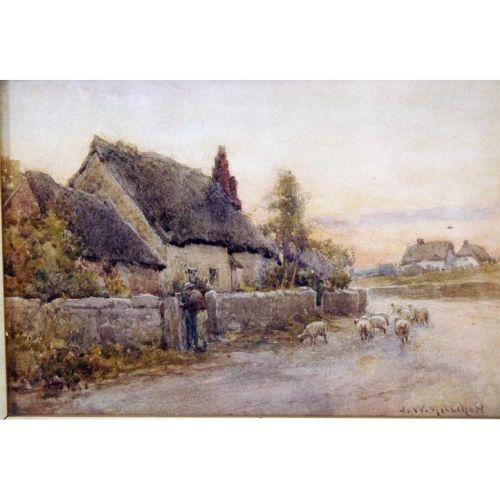 J.W. MILLIKEN, "A Quiet Evening", 6 1/2" x 9 1/2" watercolor, CONDITION REPORT: toning. PACKING AND SHIPPING: We offer packing (double boxed in most cases) and shipping of this item within the Continental United States by USPS or UPS (our choice- boxes over 30lbs or oversized may be recalculated based on buyer's location), NOT INCLUDING INSURANCE (it will be added when we know the sales price) for $30