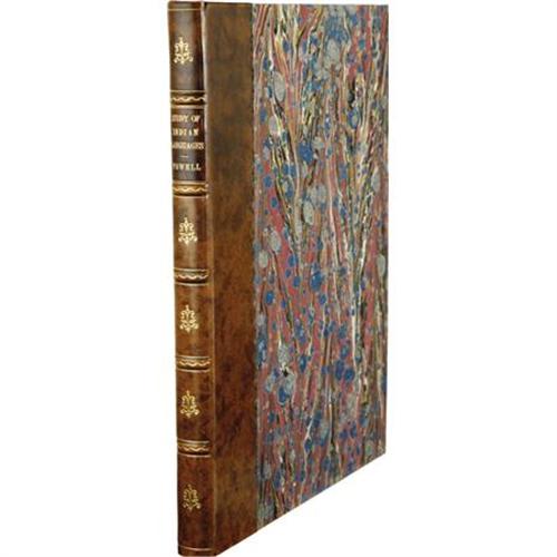 <B>J ohn .W esley . Powell: <I>Introduction to the Study of Indian Languages</B></I></B></I> with Word Phrases and Sentences to be Collected. By J.W. Powell. Second Edition-with Charts. Smithsonian Institution-Bureau of Ethnology, J.W. Powell Director . (Washington: Government Printing Office, 1880). Second edition. Quarto (11.5” x 8.5”). xi, 216 pages. Four kinship charts laid into rear pocket (three folding). Handsomely rebound in quarter mottled calf over marbled paper boards by the Cottage Bindery in Bath, spine in six compartments with five raised bands, and lettered and tooled in gilt. Some slight dampstains to the margins and not affecting the text, also to the edges of the charts, a child's scribbling on the blank verso of a section title in the middle, else a very good copy. Housed in a custom cloth slipcase.<BR><BR><b>Shipping:</b> Books & Catalogs (<a target="_blank" href="http://www.heritageauctions.com/common/shipping.php">view shipping information</a>)