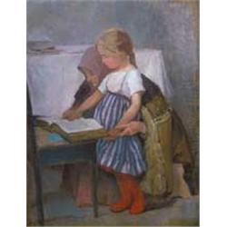 János Tornyai (1869-1936): The first reading<p>Oil on wood, 59x45,5 cm, Signed bottom right: Tornyai, EUR 2 941