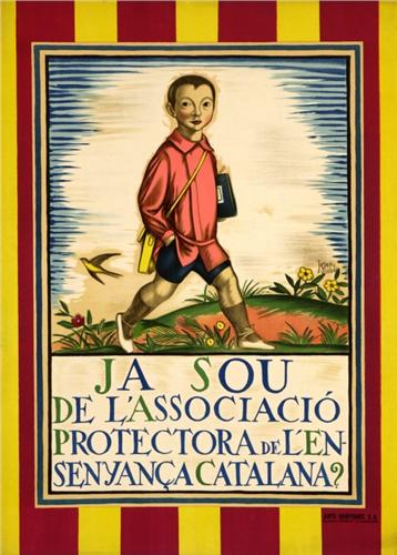 OBIOLS, JOSEP. JA SOU DE L´ASSOCIACIO PROTECTORA DE L´ENSENYANÇA CATALANA. 1930. 100x70cm. (40x27in.). Litografía. A-. Entelado.
