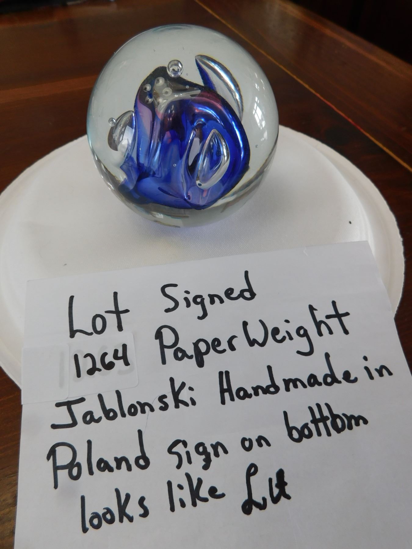 JABLONSKI, HANDMADE IN POLAND SIGNED PAPERWEIGHT