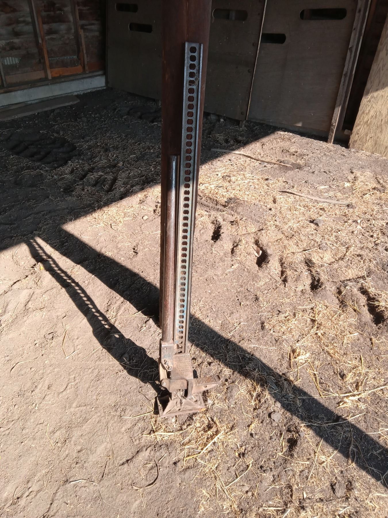 JACK ALL AND WOODEN BOARDS IN TRACTOR SHED