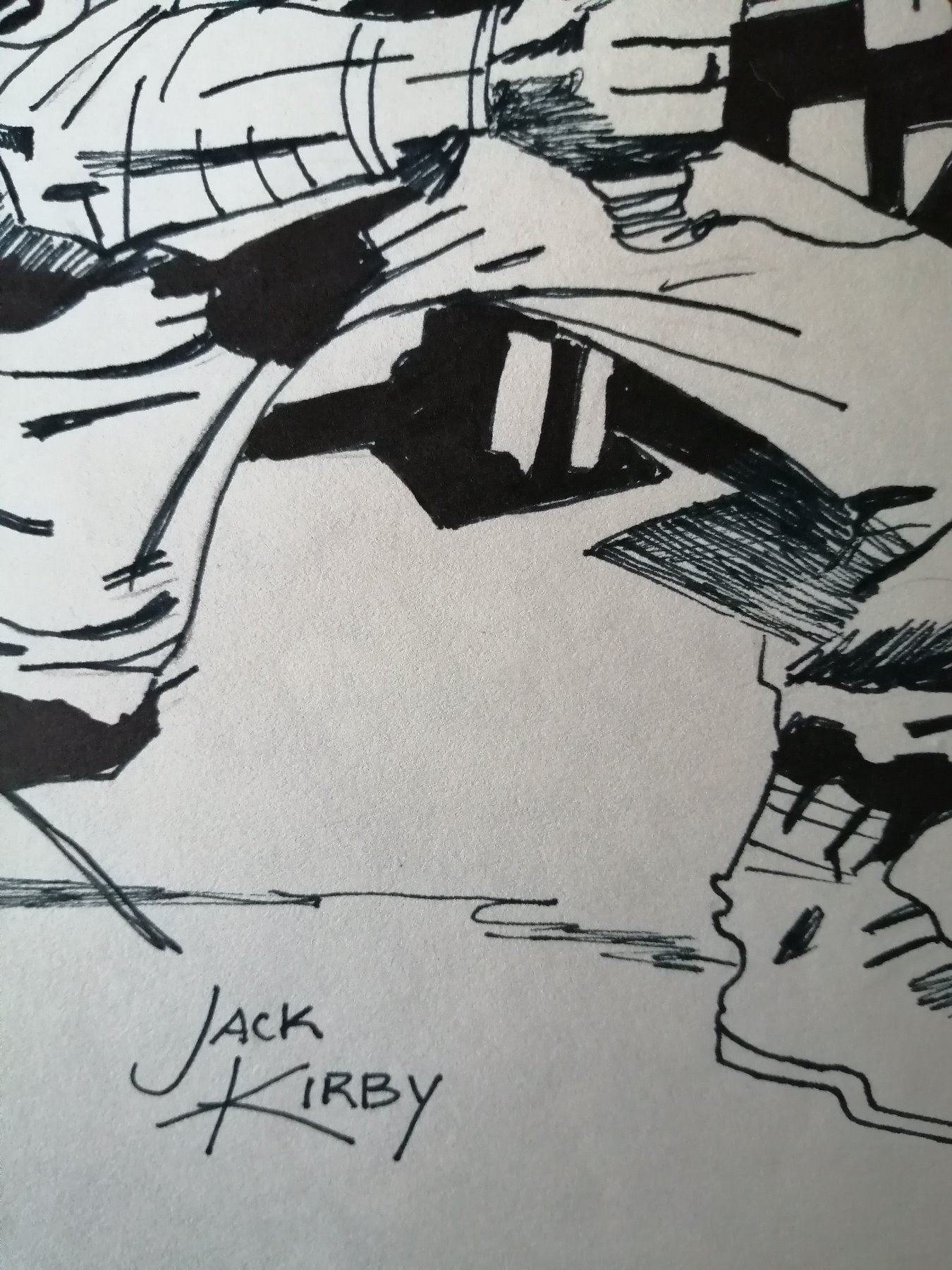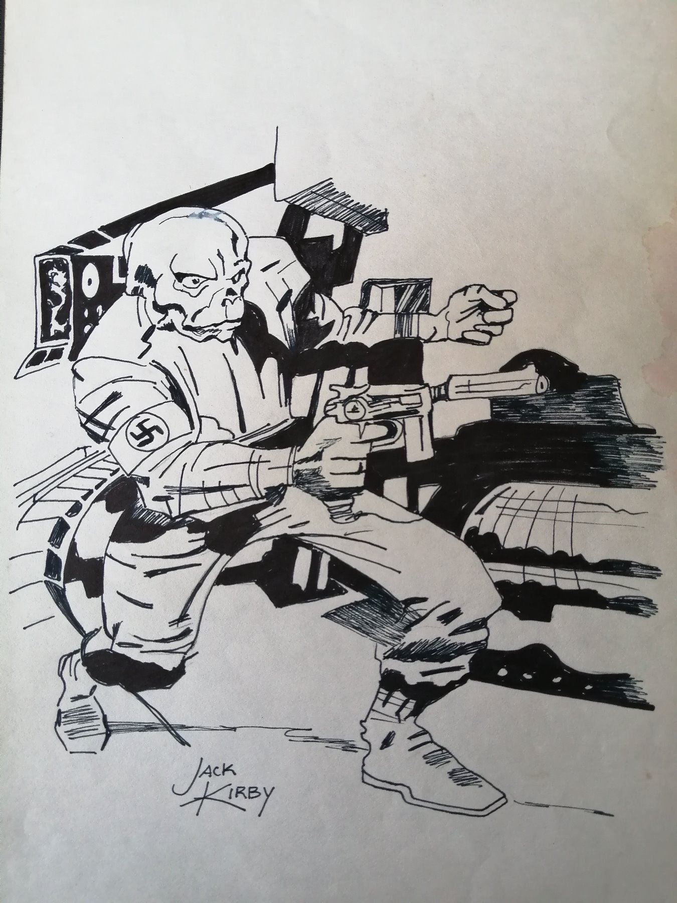 The drawing measures 12.5 x 8.25 inches. Drawn and signed by Jack Kirby. Has Gallery stamp on verso, and is supplied with coa.