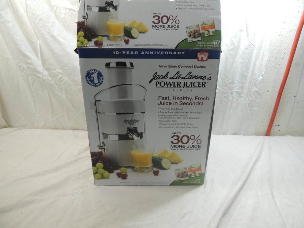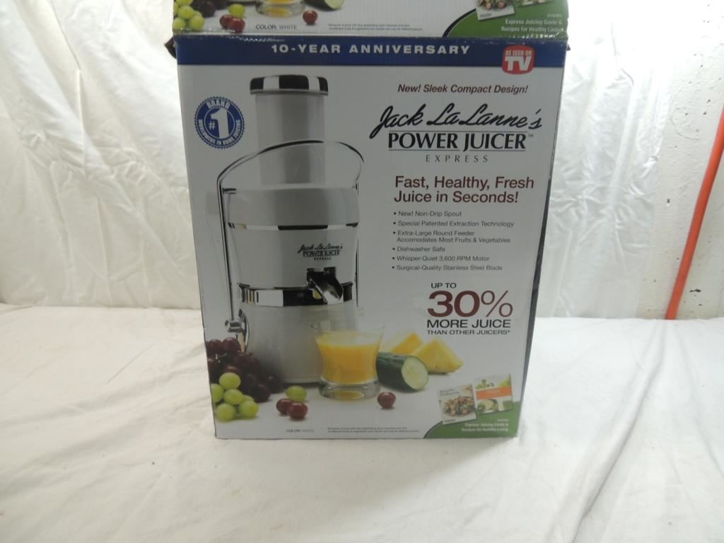SLEEK COMPACT DESIGN, FAST HEALTHY FRESH JUICE IN SECONDS, NON DRIP SPOUT, SPECIAL PATENTED EXTRACTION TECHNOLOGY, EXTRA LARGE ROUND FEEDER, DISHWASHER SAFE, WHISPER QUIET 3600 RPM MOTOR, AS IS, IN BOX AS SHOWN SEE PHOTO FOR MORE DETAILS.