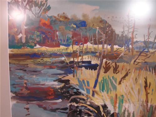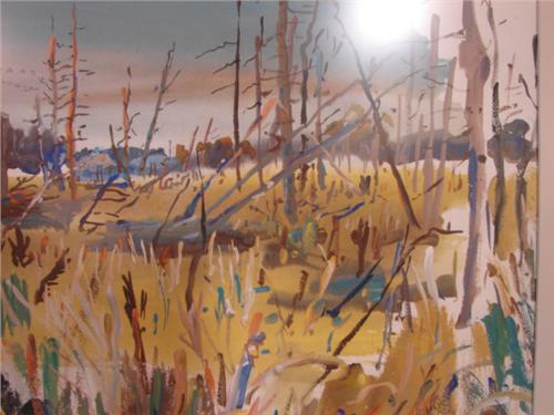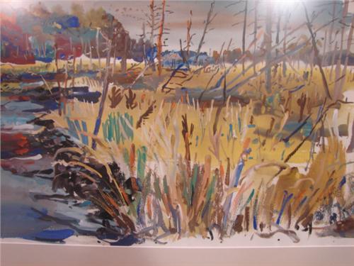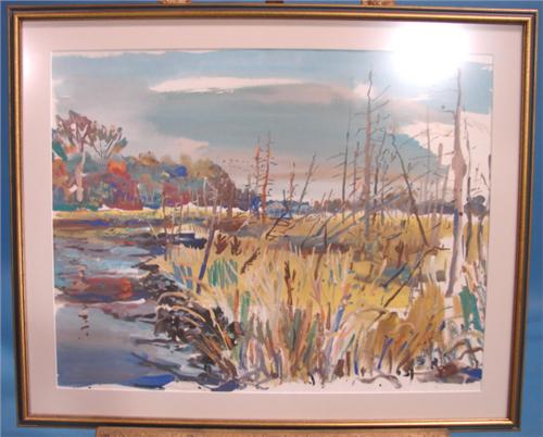 JACK LEWIS (1956) DELAWARE MARSH LANDSCAPE WATERCOLOR PAINTING. Signed in lower right “Jack Lewis/56”. 32.5” x 26.5” framed