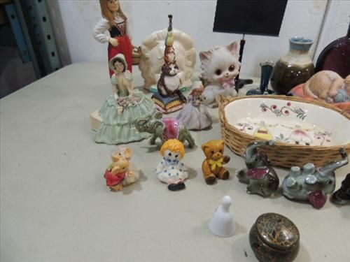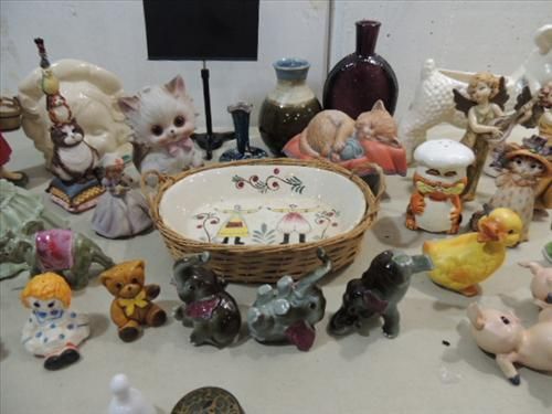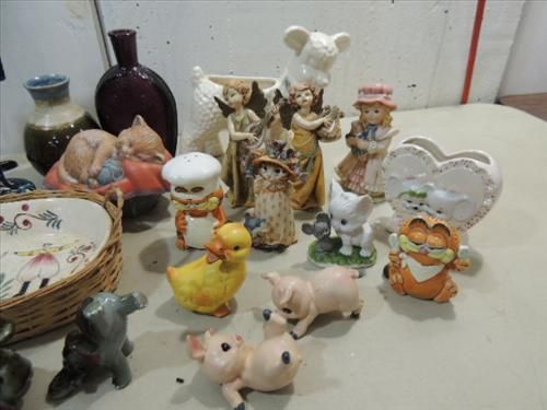 JACK POT LOT ASSORTED VINTAGE CERAMIC ANIMALS, FIGURINES, VASES, SALT PEPPER SHAKERS AND MORE. AS SHOWN. VIEW PICTURE FOR DETAIL.