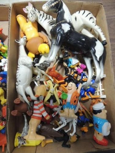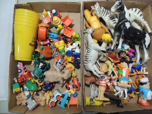 JACK POT LOT MCDONALD'S HAPPY MEAL PRIZES, FLINTSTONE FIGURES, HORSES, ZEBRAS AND CUPS. AS SHOWN. VIEW PICTURE FOR DETAIL.