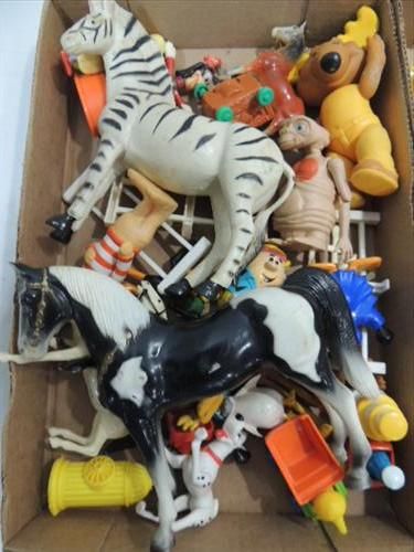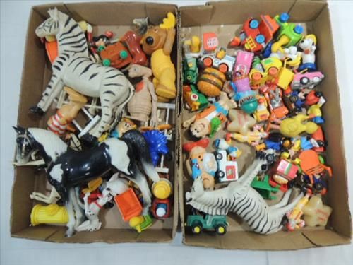 JACK POT LOT MCDONALD'S HAPPY MEAL PRIZES, FLINTSTONE FIGURES, HORSES, ZEBRAS AND CUPS. AS SHOWN. VIEW PICTURE FOR DETAIL.
