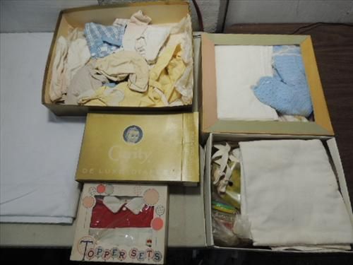JACK POT LOT VINTAGE BABY OR DOLL CLOTHES MANY IN ORIGINAL NEW BOX. AS SHOWN. VIEW PICTURE FOR DETAIL.