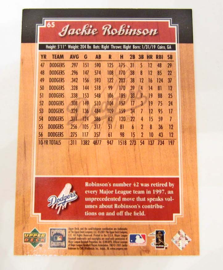 JACKIE ROBINSON 2001 UPPER DECK LEGENDS BASEBALL CARD #65