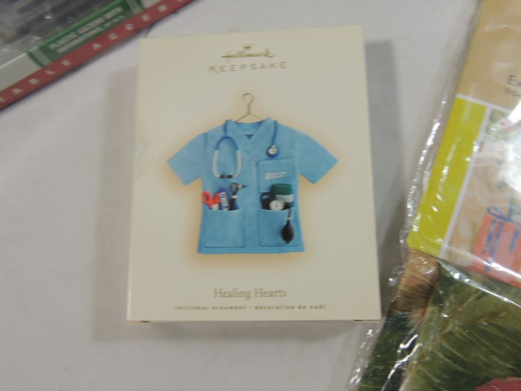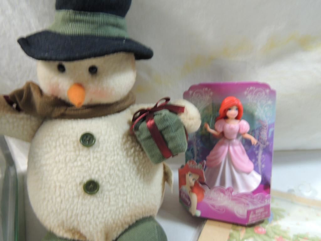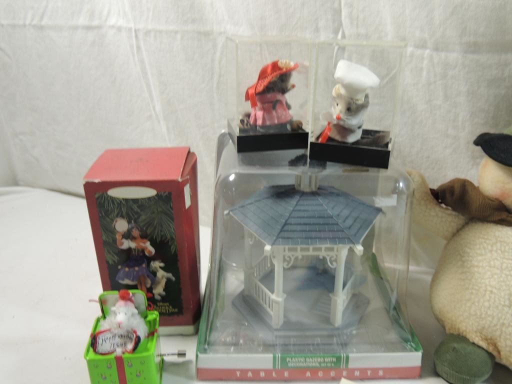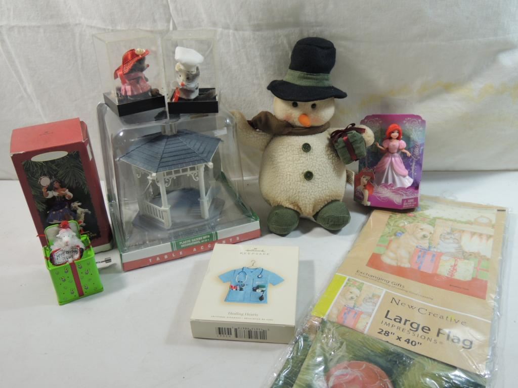 JACKPOT BOX ASSORTED CHIRSTMAS FLAG LARGE FLAG CAT AND DOG BY CHRISTMAS TREE, DECORATED HAND MADE MICE, DISNEY ARIEL TOY, HALLMARK KEEPSAKE HEALING HEARTS ORNAMENT, HALLMARK KEEPSAKE DISNEY HUNCHBACK OF NOTRE DAME, SNOWMAN, TABLE ACCENTS PLASTIC GAZEBO AS SHOWN SEE PHOTO FOR MORE DETAILS.