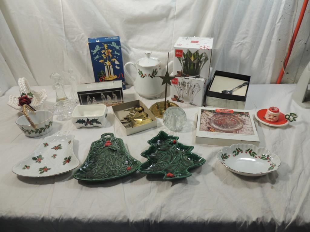 SERVING PLATES, CANDY DISHES, NEW IN BOXES, DECORATIVE PLATES, CERAMIC BOWLS, DISHES, GLASS BOWLS, DISHES, AS SHOWN SEE PHOTO FOR MORE DETAILS.