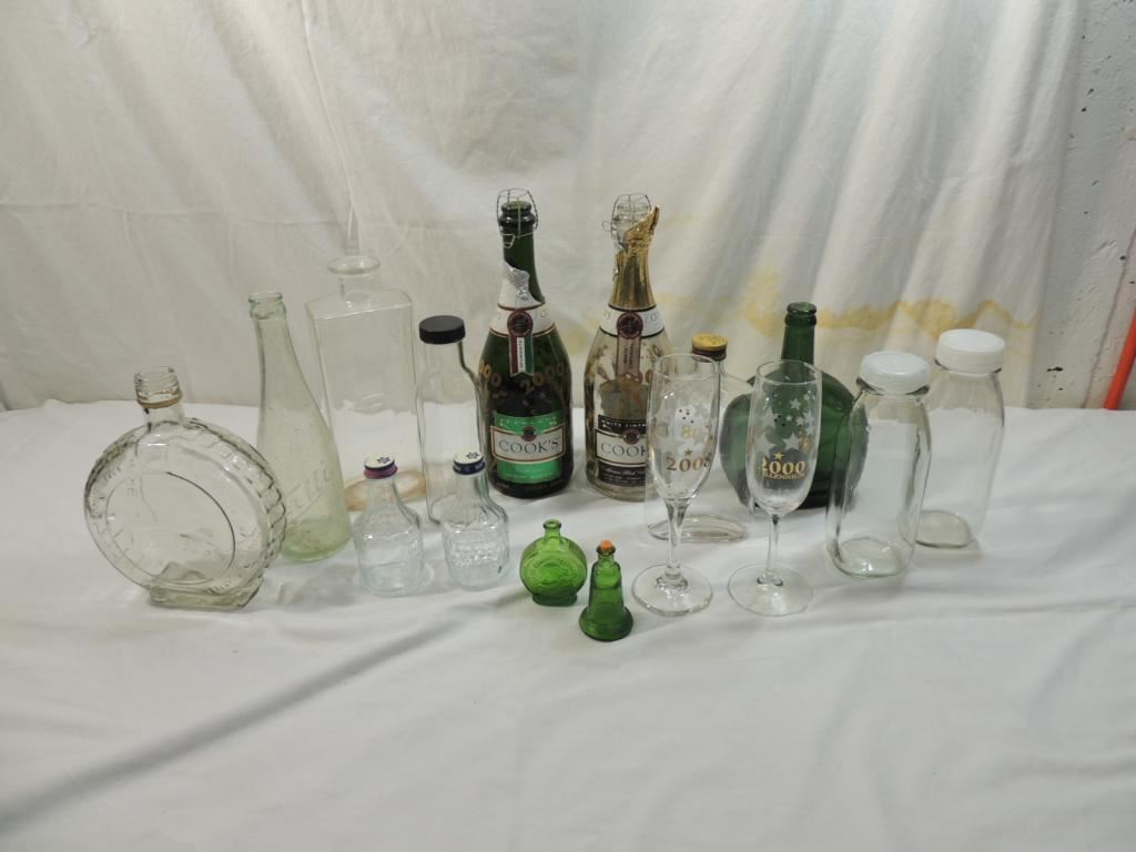 VINTAGE BOTTLES, GLASSWARE, GLASSES, COLLECTIBLE, VINTAGE AS SHOWN SEE PHOTO FOR MORE DETAILS.