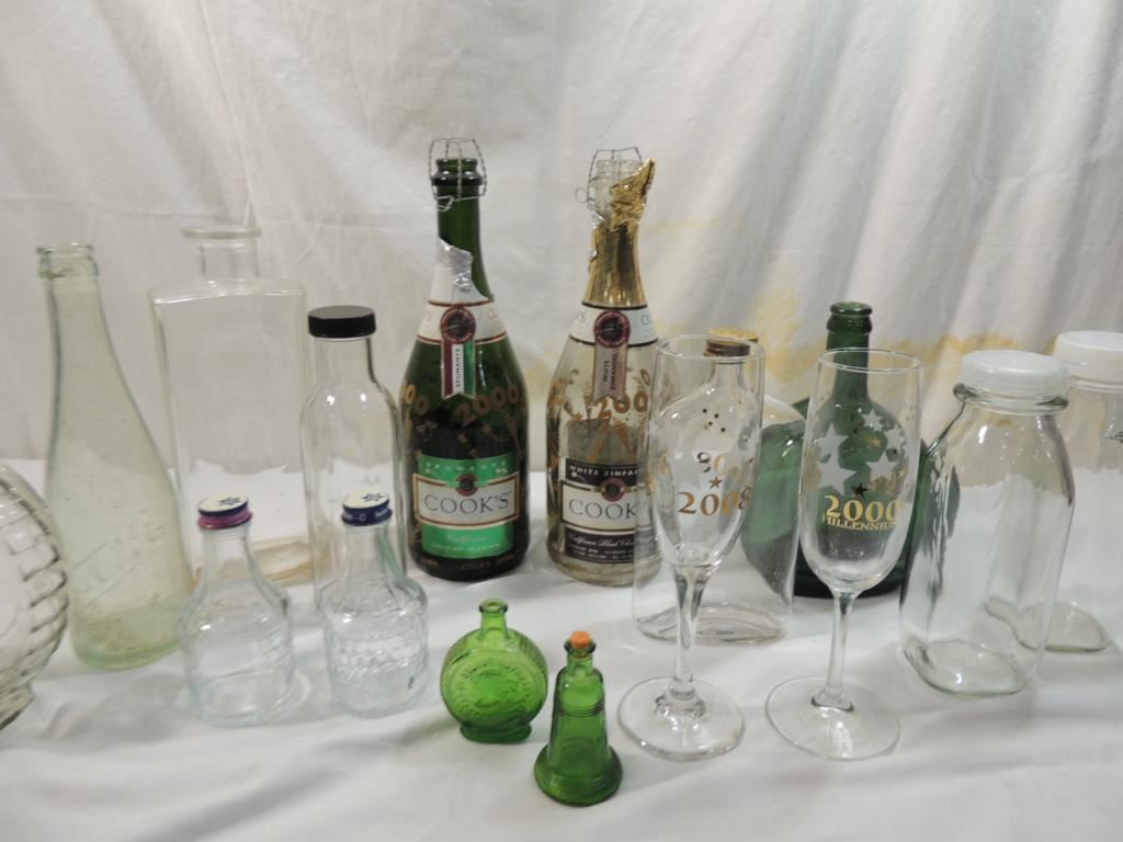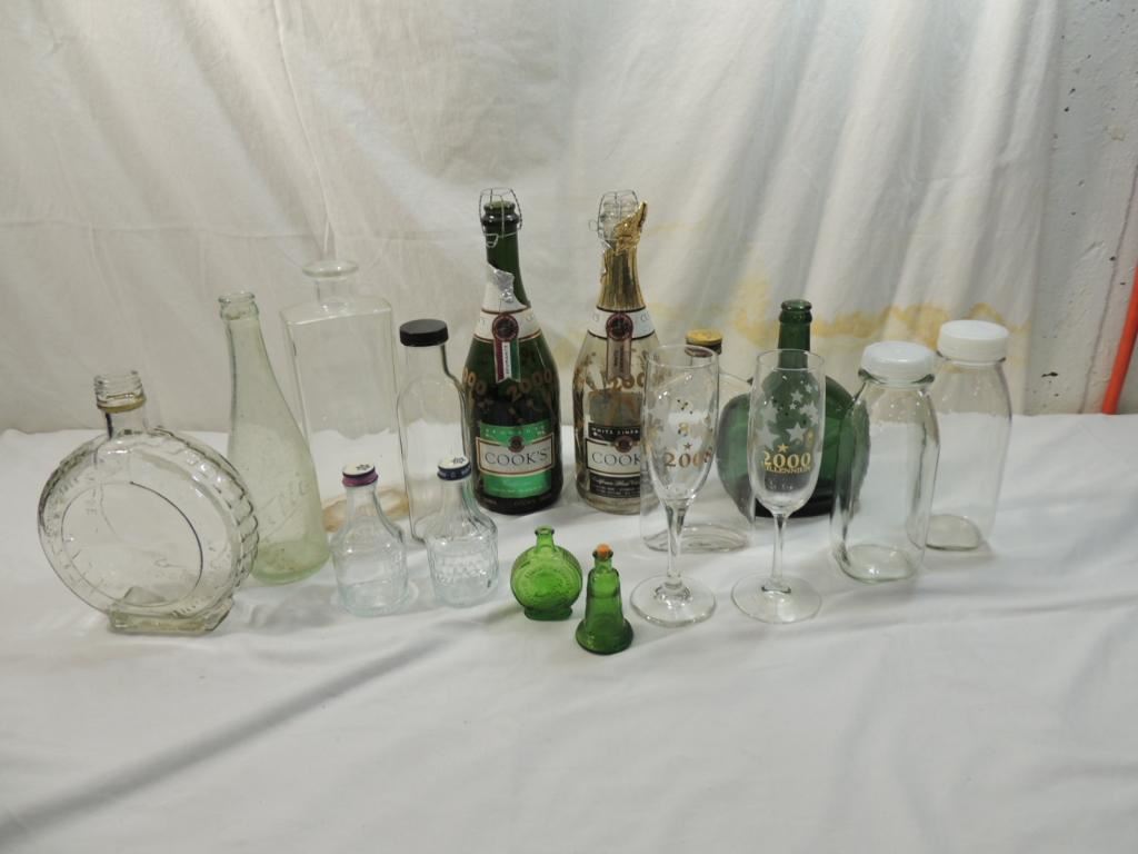 VINTAGE BOTTLES, GLASSWARE, GLASSES, COLLECTIBLE, VINTAGE AS SHOWN SEE PHOTO FOR MORE DETAILS.