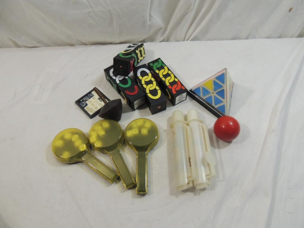 ASSORTED PUZZLE GAMES, VINTAGE GAMES, DICE GAMES, COLLECTIBLE GAMES, AS SHOWN SEE PHOTO FOR MORE DETAILS.