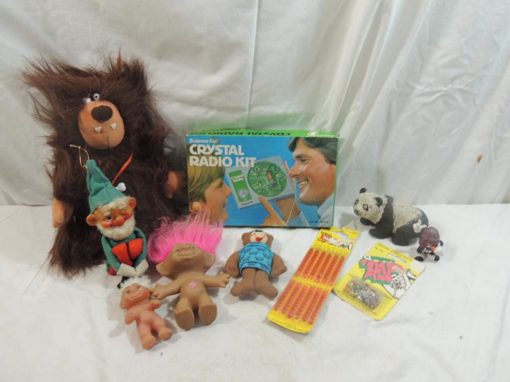 FRIENDSHIP PINS, TROLLS, CRYSTAL RADIO, ELF, AS SHOWN SEE PHOTO FOR MORE DETAILS.
