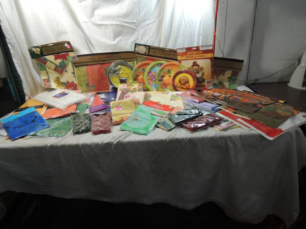 TABLE RUNNER, CENTER PIECE, PLACEMATT, TABLE CLOTH, PLATES, NAPKINS, AS SHOWN SEE PHOTO FOR MORE DETAILS.