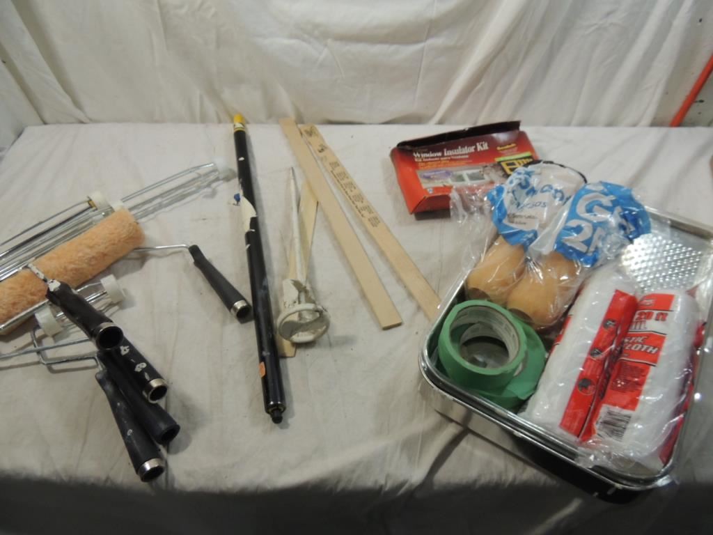 HOME IMPORVEMENTS, HOME REPAIR, ROLLERS, EXTENSION STICKS, WINDOW INSULATOR, PAINT TRAY, AS SHOWN SEE PHOTO FOR MORE DETAILS.