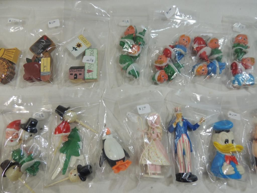 CALENDAR DISPLAY, HOLIDAY SEASON NICK NACKS, HOME DECOR, CAKE TOPPERS, CUPCAKE TOPPERS, WALL DISPLAY SELF ITEMS. FLINTSTONES, WOODEN, THANKSGIVING, FALL, WINTER CHRISTMAS, SNOWMAN, VINTAGE DISNEY, LITTLE BOW PEEP, UNCLE SAM, FOURTH OF JULY, GARDEN, AS SHO