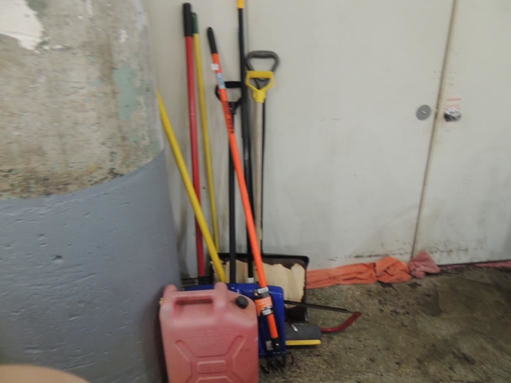 SNOW SHOVELS, SHOVELS, GAS CANS, MOP, SAW, BRANCH TRIMMER, TOOLS, YARD TOOLS, LAWN TOOLS, OUTDOOR TOOLS, AS SHOWN SEE PHOTO FOR MORE DETAILS.