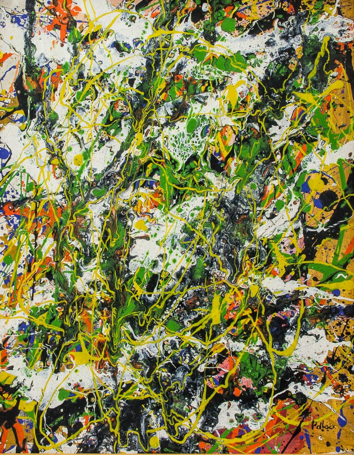 Oil on canvas, framed. Featuring an abstract expressionist composition. Signed and attr. Jackson Pollock (American, 1912-1956) on the lower right corner. 50 x 40 cm (19.7 x 15.8 inches). Frame size: 58 x 48 cm (22.8 x 18.9 inches). Major Abstract Expressionist Jackson Pollock, dubbed "Jack the Dripper" by Time magazine in 1956, is best known for his large "action" or drip paintings of 1947-52, formed by pouring and manipulating liquid paint atop canvases set on the floor. A wholly original, rule-shattering figure in American art, Pollock inspired Frank Stella, Richard Serra, and the Color Field painters. PROVENANCE: Southern Ontario estate