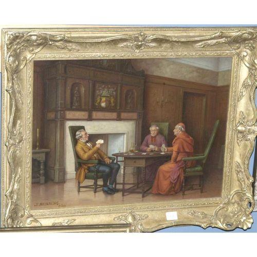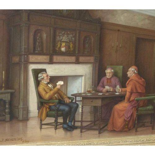 JACOB MEMBLING, 12"x16" oil on canvas, Cardinal Playing Cards, CONDITION REPORT: no problems. PACKING AND SHIPPING: We offer packing (double boxed in most cases) and shipping of this item within the Continental United States by USPS or UPS (our choice- boxes over 30lbs or oversized may be recalculated based on buyer's location), NOT INCLUDING INSURANCE (it will be added when we know the sales price) for $40