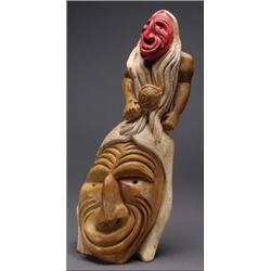 JACOB THOMAS (1922-), A stone carving of an Iroquois False Face shaman emerging from a mask, si...
