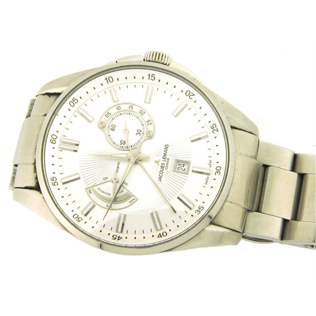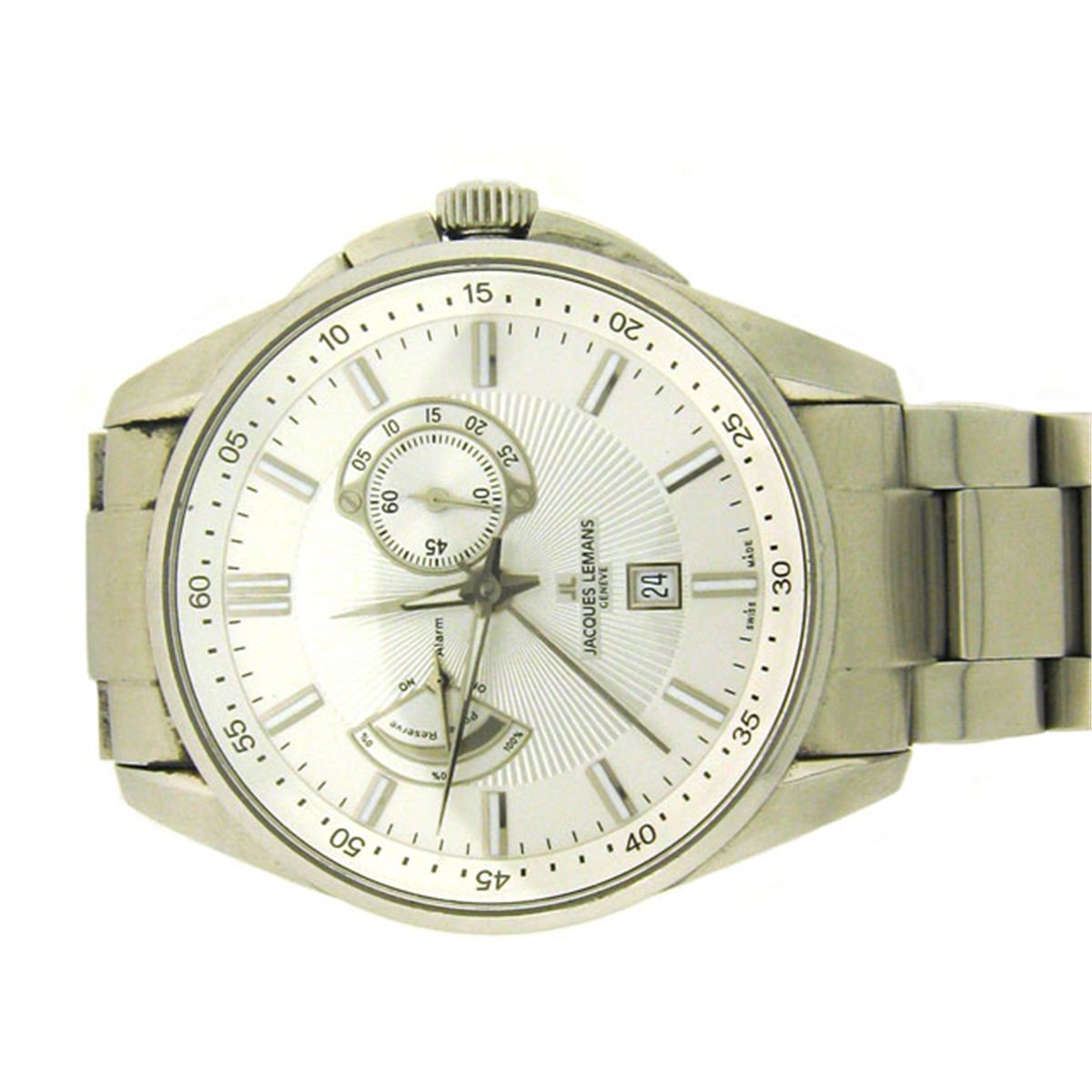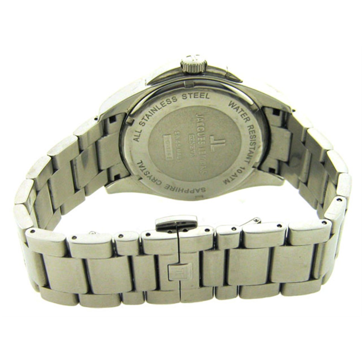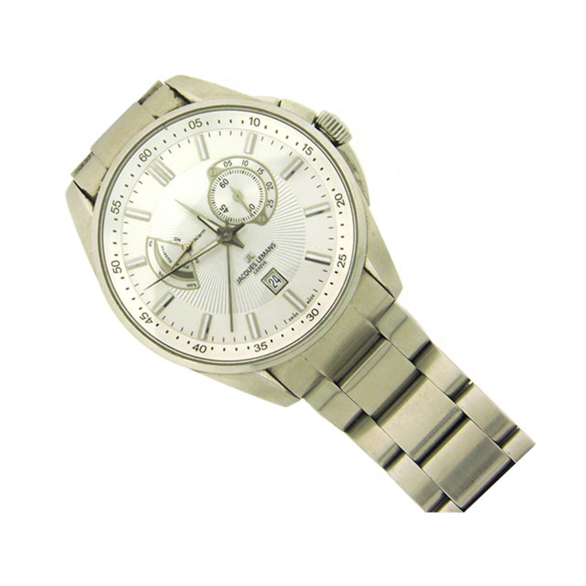 The watch has the following features:  Solid stainless steel 316L case;  43 mm Case diameter; Sapphire crystal; Quartz movement; and Water resistant.